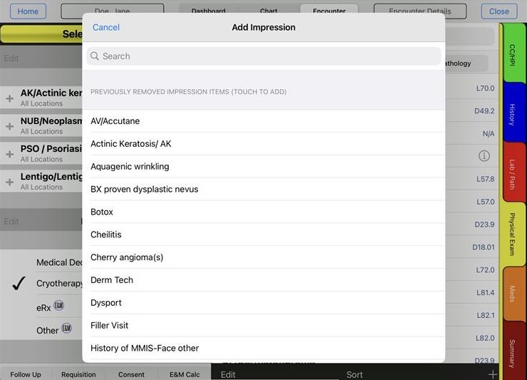 You have the ability to add and edit lists throughout the eDerm app. eDerm will learn how you organize and maintain these lists so that each time you use a list the items in that list will appear as you last edited them. With this customization feature, the items that are most important to you will always appear exactly as you prefer them. These features will revolutionize your dermatology electronic medical records, helping you to always work faster and smarter.